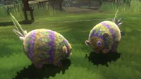 The Lemmoning appears as a round lemon-shaped piñata. Its head is yellow and its body is purple and green.