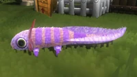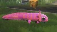 The Newtgat is a small pink newt/axolotl piñata. Its gills are red, and its large eyes have green irises. It has a purple tail, a pink and purple pattern covering its body, and purple legs.